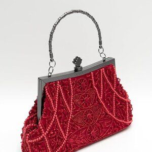 Vintage floral leaf beads sequins evening clutch bag — Elegant, retro charm for special occasions.