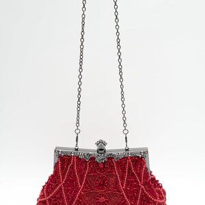Features: This stunning evening clutch features a beautifully hand-sewn flower and leaf totem design with plastic beads and sequins, plus double-sided bead embroidery with small beads on the bottom. The hardware is engraved with delicate flower and leaf patterns and accented with rhinestones. The exquisite leaf-shaped clasp and vine-patterned handle add to its luxurious, meticulously crafted look. The spacious interior easily fits a cell phone, lipstick, credit cards, and keys, with interior pockets to keep smaller essentials organized. Versatile carrying options include a detachable chain and handle, allowing it to be carried cross-body, on the shoulder, or by hand. The silky lining offers a plush feel and durability.