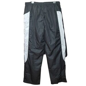 DETAILS: Pants Black/White color, Straight leg. High rise, lightweight, breathable, & comfortable. Side pockets. Thick stretchy waist band. Mesh lining, Fully line, Pull on style with adjustable waist tie. Logo accent. Wind block material.