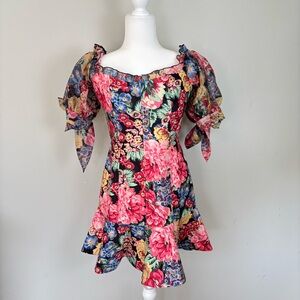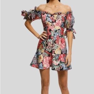 KEEPSAKE The Label Black Hydrangea Runaway Off The Shoulder Mini Dress-6-NWT