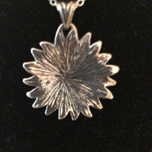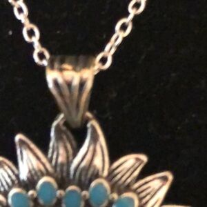 Elegant silver necklace featuring a stunning turquoise heart pendant. Perfect for adding a touch of color to any outfit. Matching 16” silver chain with a 2” extender. Pendant measures app. 1 1/8” across. Really