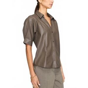 Thanks for checking out our fabulous Posh closet!! All of our items are new with tags! Never worn or used <3 - Composition: 87% polyester, 13% polyurethane - Description: Perfectly tailored and soft to the touch.The Max Shirt by Brochu Walker blends timeless style with modern sophistication in Tanner, featuring a collar and tailored fit for a sleek look. Made from 87% Polyester and 13% Polyurethane, this imported button-up is crafted from vegan leather, offering both elegance and effortless wearability. Designed with princess seams and button-closed cuffs, it promises a refined feminine silhouette. Closure: Button closure. Model is 5'9" wearing a size Small. - Because all of our merchandise is brand new and often times in original packaging, extra photos or measurements cannot be provided - Heads-up that color shades may vary due to the photo lighting - We always put the color name in the title - All items are final sale - Thank you so much for shopping! We appreciate you :)