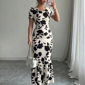 BRAND NEW, Floral Black & White Stretchy Knit Dress (Small, Medium, Large & XL)