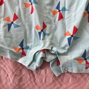 Primary one piece long sleeve rashguard swim suit. Size 3T. Zipper front and snaps at crotch for easy swim diaper changes or potty breaks. Well loved and worn - see photos for signs of wear!