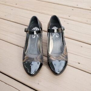 Dansko Bonnie Brown Animal Print Black Patent Leather Mary Jane Buckle Pumps
