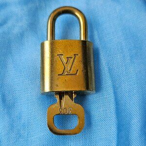 LV lock and Key #303. Brass. Pre-loved. In good used condition. Some nicks. Lock works well.