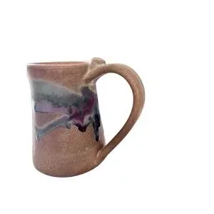 Handthrown Studio Pottery earthenware heavy coffee mug with drip paint design & thumb shelf