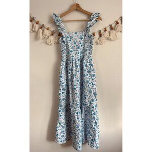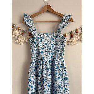 Draper James Blue Floral Ruffle Strap Midi Dress Coquette Shabby Chic FeminineXS