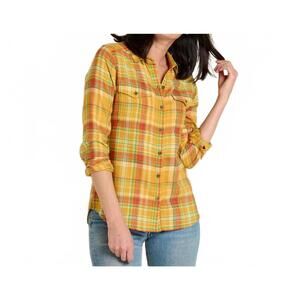 The Re-Form Flannel Long Sleeve Shirt by TOAD&CO is perfect for the stylish and eco-conscious woman. Crafted from 60% recycled cotton and 40% recycled polyester, this lightweight plaid and check flannel offers modern outdoor colors. It features long sleeves, a button front placket, and button-through chest pockets with a length of 27 inches. Closure: Button closure. Care: Machine wash on cold, tumble dry low, cool iron as needed, and do not bleach.