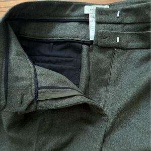 This is a pair of Paul & Joe green trousers pants in a size 40 which according to the attached chart should be a size US 8. Please check measurements. Wool polyamide and cashmere. Dry clean. Unique waist construction so it looks like a double waist. Pleated. High rise. Classic old money retro luxury look. Button and slide closure. Wide leg.