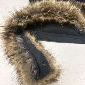 Adjustable, insulated hood has a removable faux fur ruff