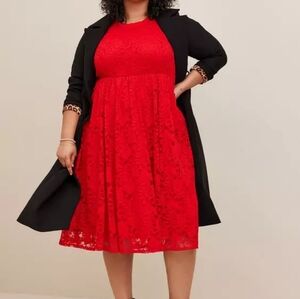 Torrid Red Lace Fit & Flare Dress Scalloped short sleeves Soft Flowy Holiday Christmas dress Valentine's Date night Special occasion 6X 30