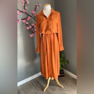 Chic rayon shirt dress from & Other Stories Paris Atelier in burnt orange. Trendy, versatile and stylish. With 3-button sleeves and slits up each side, this shirt dress can be worn as a dress or a fashionable, long cover shirt over trousers or jeans.