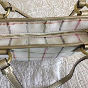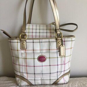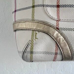 Coach Cream Tattersall Multi Colored Plaid Leather Shoulder Bag - Cream with Gold Straps