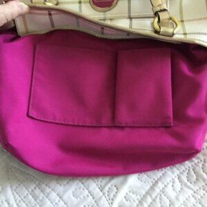 2 Pc Set Coach Heritage Tattersall Signature Leather Shoulder Bag AND Coach Heritage Tattersall Wristlet with Unbranded Lavender Silk Dustbag