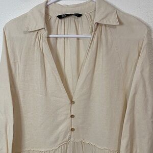 Zara Cream Long Sleeve Dress Size M 53% lino 47% Viscose