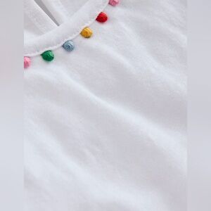 NWT Mini Boden Ali Puff Sleeve Top Pom White 100% Cotton T-Shirt, size 13-14Y