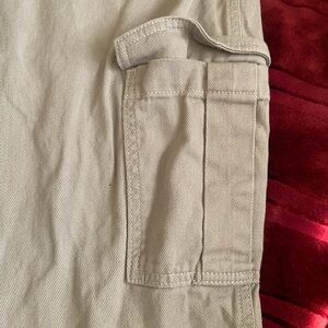 Casual light gray cargos. Pockets are very spacious. Comfortable and airy not very heavy