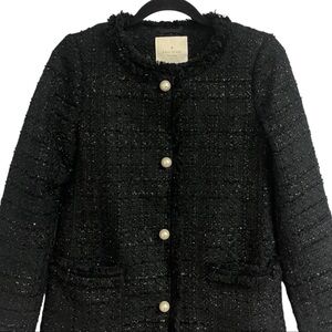 Kate Spade Sparkle Tweed Jacket Coat Pearl Button Size 0