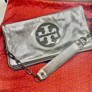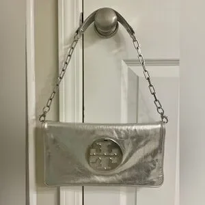 Tory Burch Metallic Reva Silver Clutch