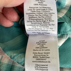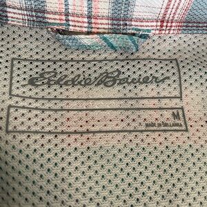Eddie Bauer Fishing Green Plaid Button-Down Short Sleeved Shirt, Size Medium