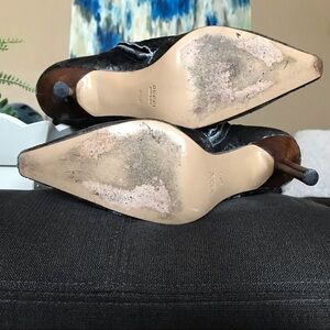 Small scuffs on heel as shown in photo, small discoloration as shown in photo