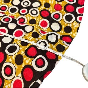 One of a kind dress that appears to be handmade. Features a sweetheart neck line, and fun fit, and flair almost mermaid silhouette. Stretch in the upper lace material, but not on the bottom. Fun geometric circle avant-garde maximalism style pattern. No size or branding tags. See measurements.