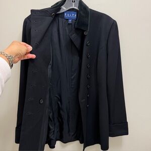 Ralph Lauren Vintage Wool Coat Jacket Velvet Collar USA Union Tag Black Size 4