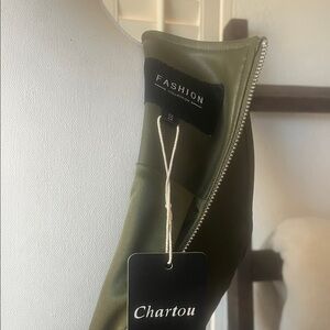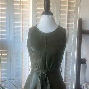 Chic Olive Green Midi Dress Pleather with matching belt.