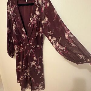 This elegant floral dress features a beautiful blend of colors, perfect for any occasion. The long sleeves and intricate design add a touch of sophistication to your wardrobe.