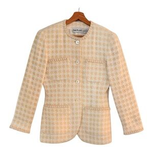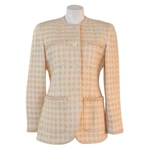 ANNE KLEIN Vintage Wool Blend Houndstooth Blazer Ivory Yellow Size 6