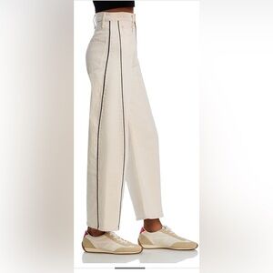 Elegant cream pants with black piping. Wide-leg design for a modern style.