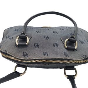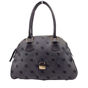 Dooney & Bourke Large Gray Monogram Canvas & Leather Trim Dome Satchel Bag GUC