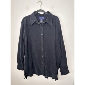Denim & Co. Women's Faux Suede Button Front Shirt Solid Black Plus Size 2X NWT