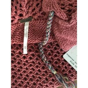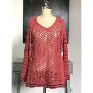 NEW Free People Women’s Small Light Red/Navy Shadow Stripe Crochet Hoodie Sweater