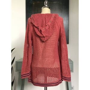 NEW Free People Women’s Small Light Red/Navy Shadow Stripe Crochet Hoodie Sweate