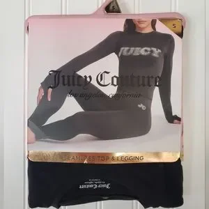 NWT Juicy Couture elegant black seamless top and leggings. Perfect for comfort and style.