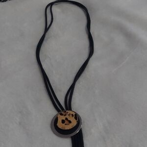 3/$12 Leopard Print Pendant Necklace with Black Cords