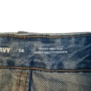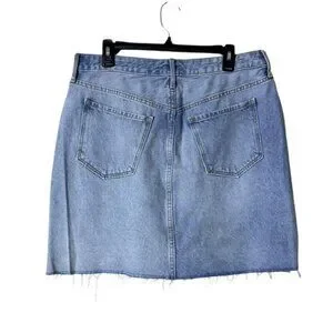 Y2K Old Navy Jean Mini Skirt Size 14 Button Fly Festival Distressed Blue
