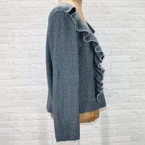 LC LAUREN CONRAD Cardigan Ruffled Front Feminine Sweater Slate Gray Grey X-Large