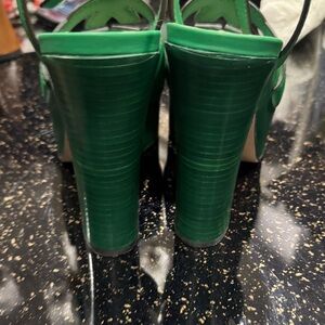 Cosmos Softy Calfskin Wooden Interlocking G Cut-Out 30/120mm Platform Sandals. Green. 37,5 US Size 7