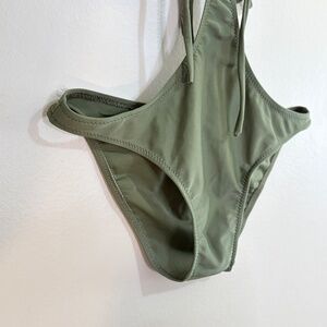 Lonely Planet olive green monokini with adjustable tie-up sides for a customizable fit. Sleek, stylish, and perfect for beach or pool days. Excellent used condition.