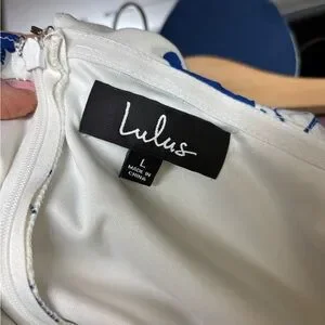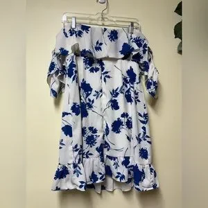 Lulus TALIA Blue & White Floral Off The Shoulder Mini Dress size - Large