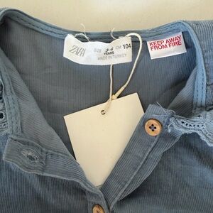 Charming blue dress featuring a button-up front and eyelet collar. Perfect for casual outings.