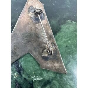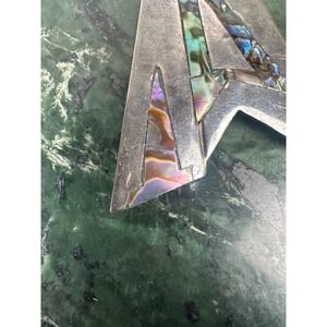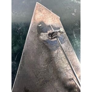 This vintage 925 sterling silver brooch features a unique geometric design with an abalone shell inlay, creating a beautiful and retro look.