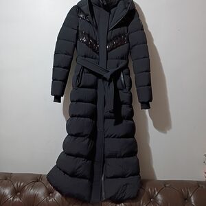 Mackage Adina Down Long Winter Coat With Sequins! Gorgeous!! Size Small Black