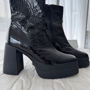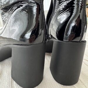 Trendy casual chic ankle boots in elegant patent leather for an elevated and polished look.