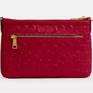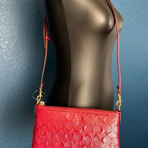 An iconic Coach silhouette, Coach Legacy Zip-Top Crossbody is an easy, everyday bag. Enamel red. Featuring a spacious interior and an outside zip pocket to secure essentials, it’s crafted of our pearlized Signature patent leather.