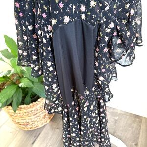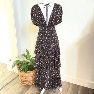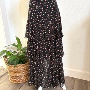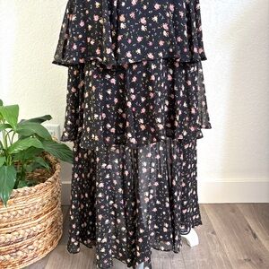 WAYF New Black Floral Tiered Maxi Dress S