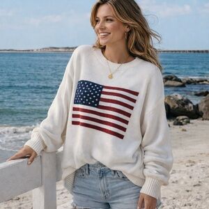 USA flag american 4th of july oversized knit sweater white
